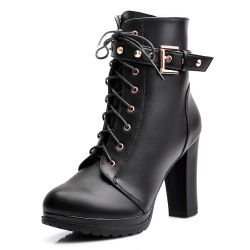 秋冬新款短靴新款靴(单棉靴高跟单 马丁靴女皮带扣粗跟单靴 真皮