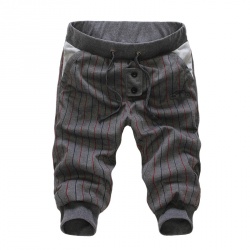 夏季新品 竖彩条时尚 门襟2扣 男式休闲运动7分裤七分裤