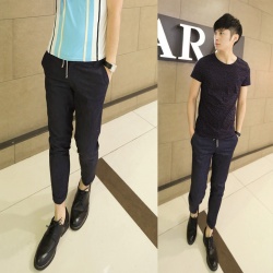 高档新款日系男式锥形裤抽绳 男士牛仔裤 男 九分裤9分裤