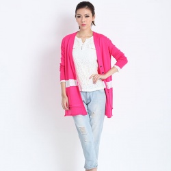 女式针织开衫休闲连帽长袖中长款修身针织衫