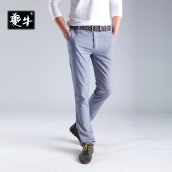 秋装新款韩版修身弹力亚麻休闲裤男 裤子棉麻男裤装