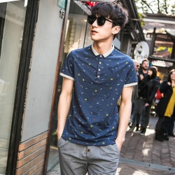 日系实拍新款男装印花翻领男式短袖POLO衫男式休闲POLO衫