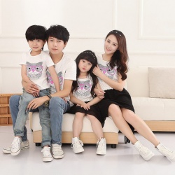 夏连帽针织雪纺T恤印花全家装母女母子装亲子装