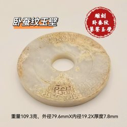 金珠汇JINZHUHUI 老物件雕刻卧蚕纹饕餮玉壁