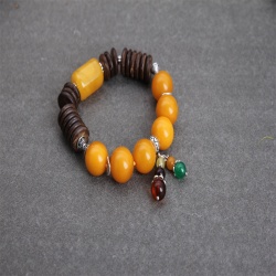 八福正品 天然鸡油黄老蜜蜡佛珠手链 原创设计饰品 促睡眠 女包邮