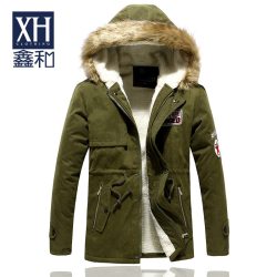 休闲品牌男装外套连帽拉链男棉大衣
